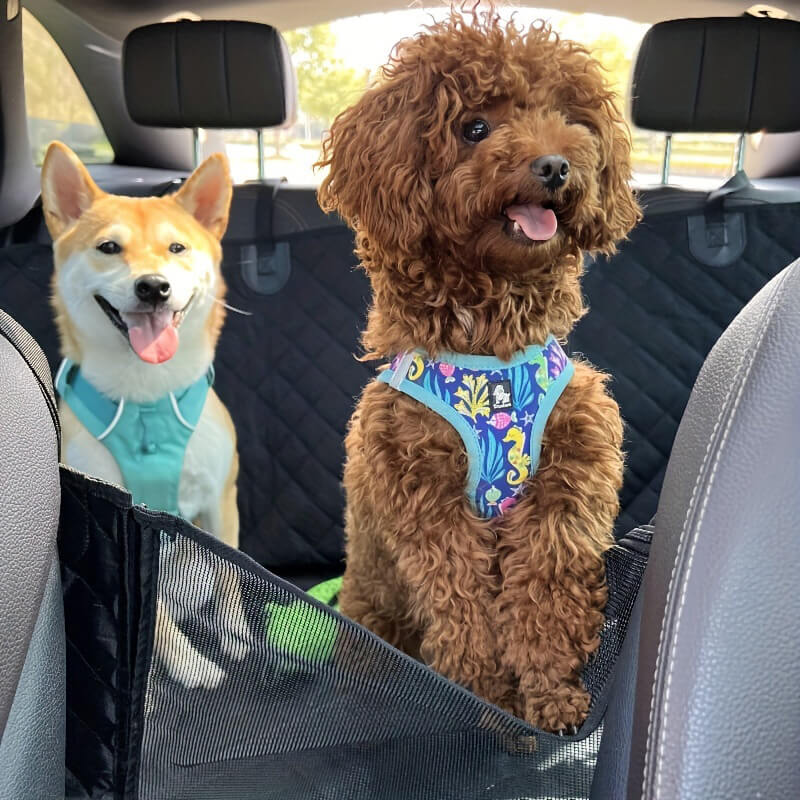 ガタガタ揺れる車内で愛犬が落ち着かない…そんな悩みはスイートドライブシートがあれば解決!低反発クッションと頑丈な中板入りで、後部座席が広くて快適なくつろぎ空間に。長時間のドライブでもぐっすり眠ったり、リラックスしたり、景色を楽しんだり、愛犬にとってドライブが楽しい時間になるはずです。